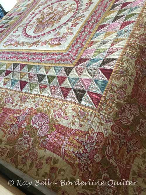 The quilts were made as group quilts where each member (12) made up twelve identical blocks which were then all sent to a coordinator who collected up all of the 144 blocks and divided them up into packages of twelve individual blocks which were then dispersed among the group members who then added sashings, cornerstones and borders.